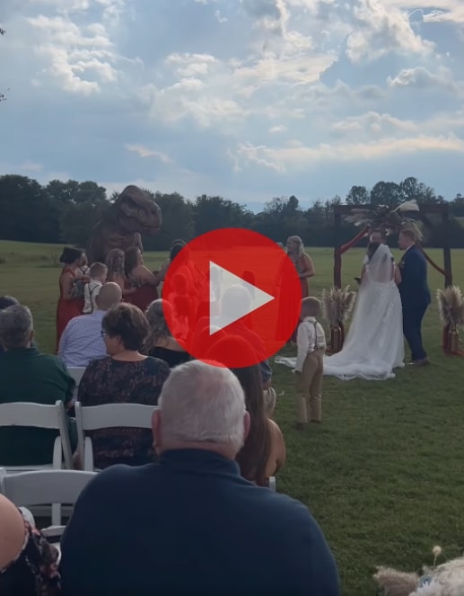A prehistoric ring bearer surprises these Tennessee wedding guests.
